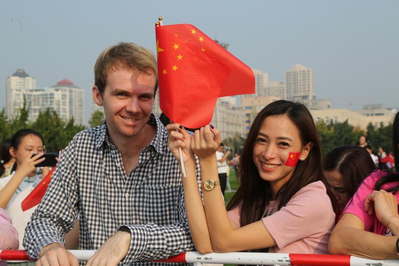 来自澳大利亚的东北财经大学法学院三年级留学生雨果,今天一大早也是特意跟同学一起来到人民广场,他激动地表示,自己虽然是一名外国留学生,但是这一段时间已经深深地被浓厚的中国国庆氛围所感染,今天特意来到人民广场感受气氛,雨果用流利的汉语告诉记者:他非常激动、非常高兴!祝愿中国繁荣富强!
