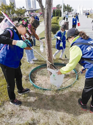 昨日,市环保志愿者协会70多名志愿者,顺沿东港商务区海岸线步行栈道,边清洁边做环保宣传。很多志愿者放弃节日休息,带着孩子参与环保公益活动,既提高了孩子的环保意识,增强了社会责任感,同时也带动了更多人共同维护生态环境。