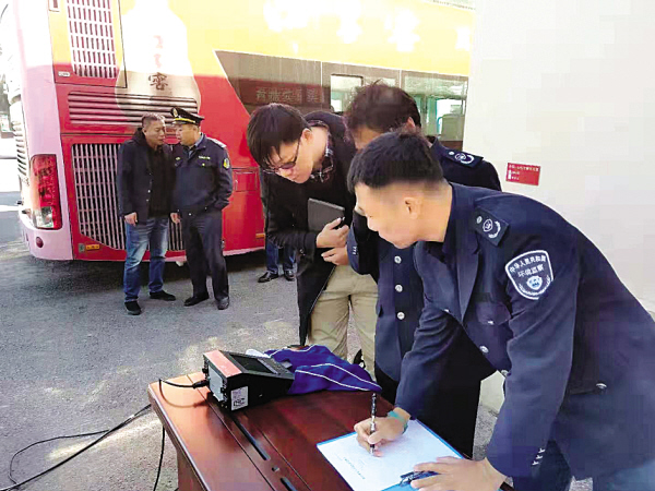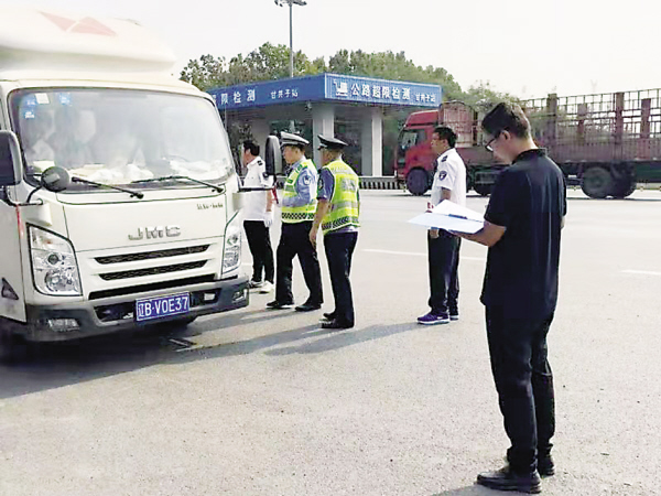 ▲开展联合执法对柴油货车进行路检。