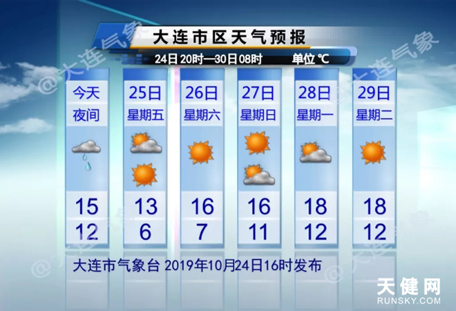 大连市气象台10月24日15时20分发布大风蓝色预警信号:预计24日夜间到25日白天:渤海偏北风7级阵风8到9级,渤海海峡东南风5到6级半夜转偏北风7级阵风8到9级,黄海北部东南风5到6级25日凌晨转偏北风7级阵风8到9级,大连陆地东南风4到5级半夜转偏北风6级阵风7到8级。