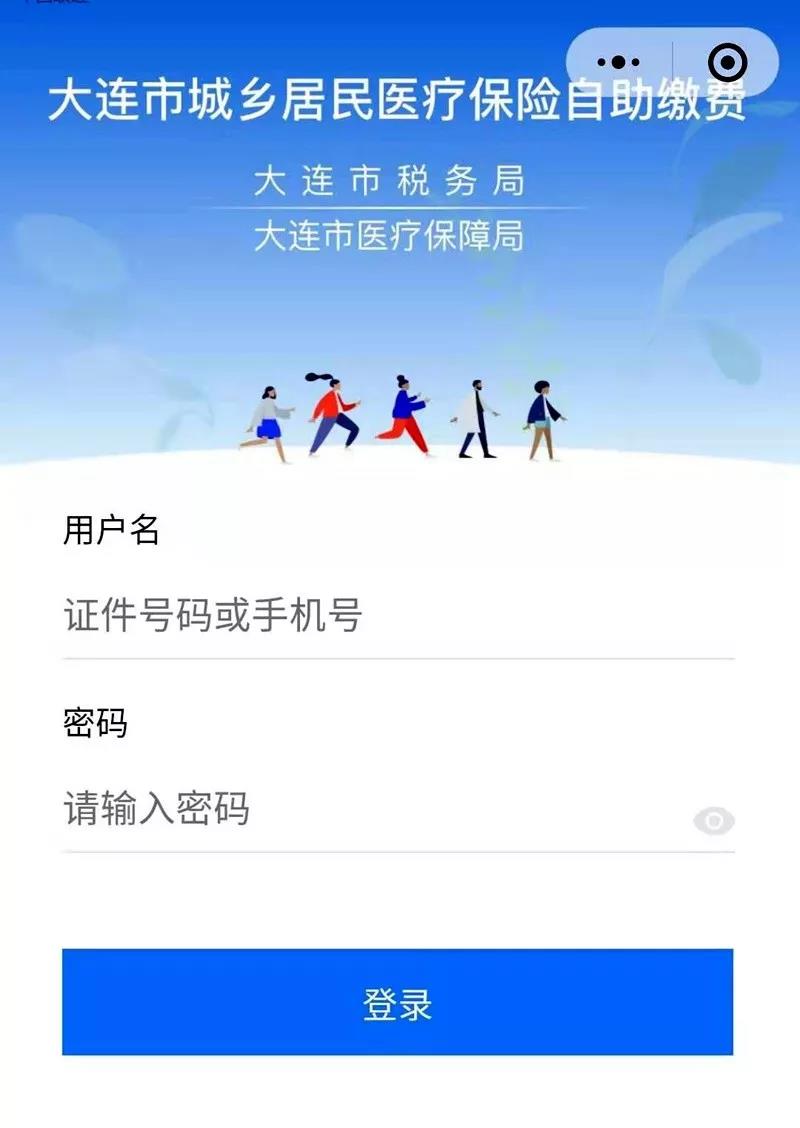 若缴费人已有缴费信息可搜索微信小程序“大连市城乡居民医保缴费”,注册自行办理缴费业务。可以使用孩子本人或他人的身份信息进行注册。