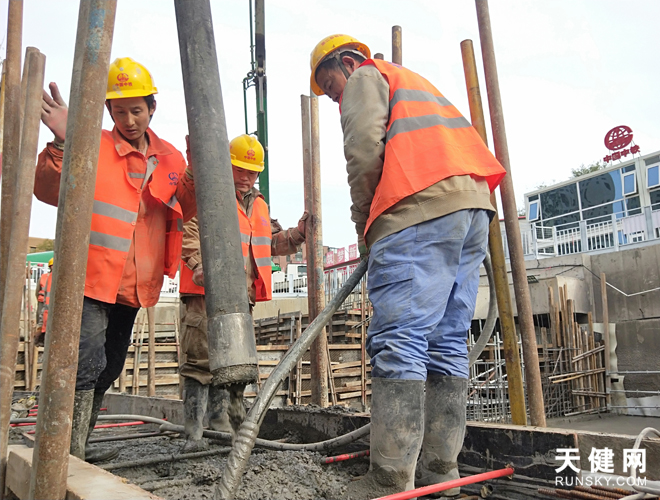 施工人员开展混泥土浇灌工作