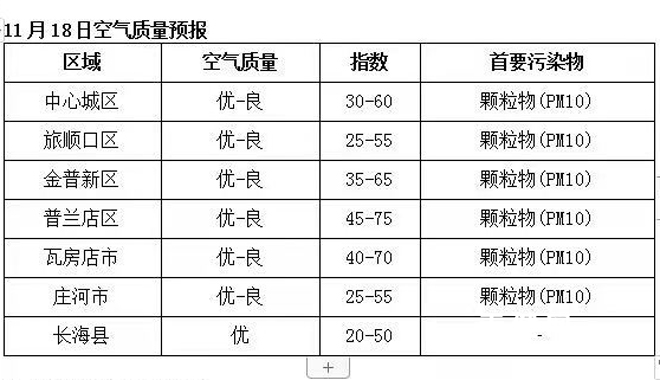 虽然天冷风大,但是空气质量却棒棒哒。预计11月18日,空气质量优-良,空气质量指数30-60,首要污染物为颗粒物(PM10)。11月19日,空气质量优-良,空气质量指数30-60,首要污染物为颗粒物(PM10)。