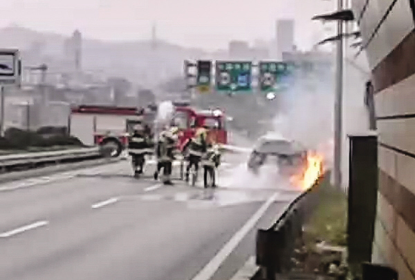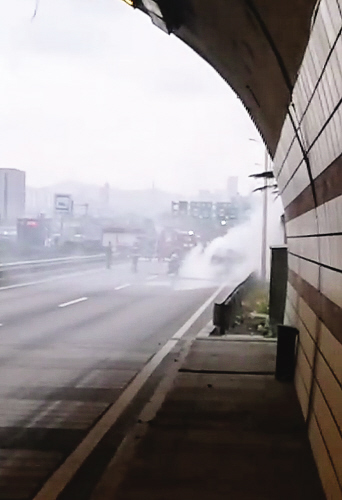 椒金山隧道外,一车自燃
