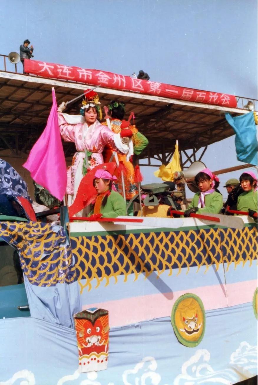 1989年,大魏家镇在大连市金州区第一届百花会上表演的节目《划龙船》。领舞者身着粉丝的京剧衣服,舞动着水袖,给百花会上带来了一道亮丽的风景线。