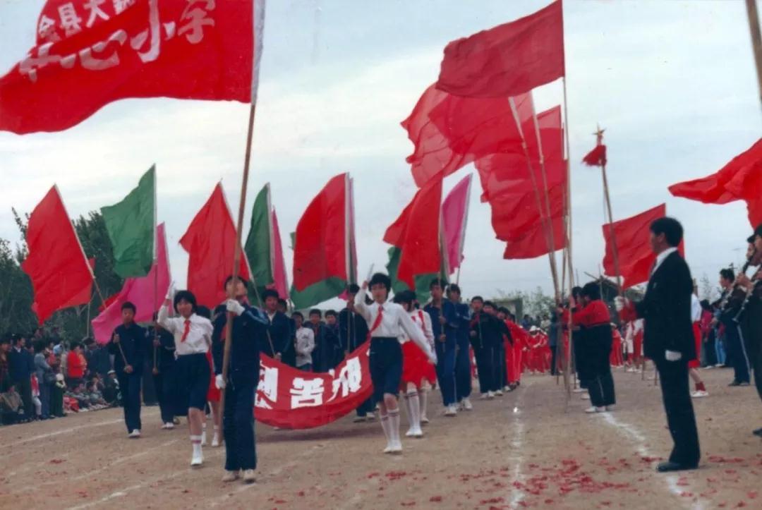 1990年,大魏家镇运动会上,大魏家镇中心小学代表队正在从主席台走过。从他们的衣着打扮中可以看出非常具有改革开放的时代特色:白色上衣、深色裤子、白色袜子和鞋子,他们精神焕发,志气昂扬,充分体现出改革开放给人们带来的希望。