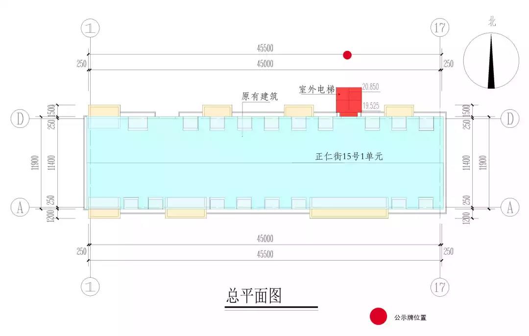 正仁街15号1单元(天兴花园B区20#)住宅增设电梯项目,建设单位为天兴花园物业处(大连晟阳物业管理有限公司),设计单位为大连华威高级建筑师事务所。