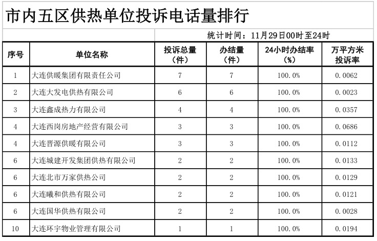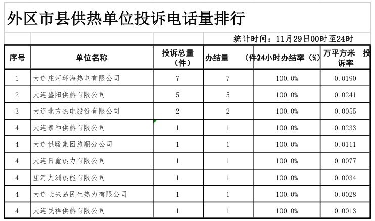 天健网消息(记者 丁一)11月30日,市住建局公布11月29日0时至24时市内五区及外区市县来自民心网、民意网、12345、投诉电话等渠道的供暖投诉量、办结率相关数据,数据显示,该时段全市范围内共接到供暖投诉331件。