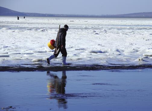 冬天的主题是冷傲。冬季,是夏家河最壮观的季节,如同极地的冰雪世界,把高冷的气质发挥到极致。波浪封印在凝固的海冰之下,表面的平静,隐藏了水下的暗涌。海面上延伸到远方的冰层,仿佛是一条通天之路。海滩上的寂静,使脚踩着冰面的声音传得更远。一切的淡定和冷傲,都在等待着下一个春天。