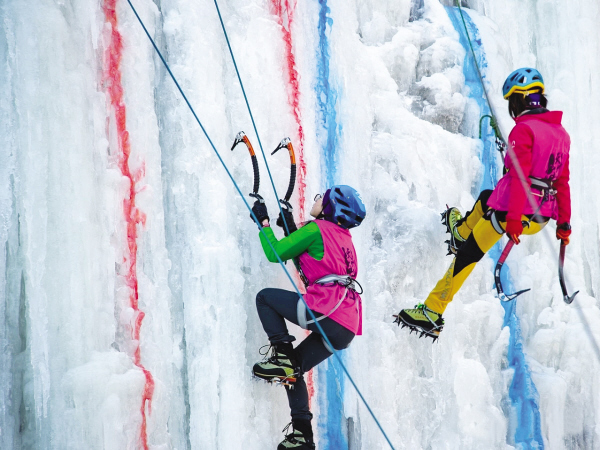 攀冰运动,被越来越多的户外爱好者喜爱,成为了冬季时尚运动的项目之一,庄河天门山国家森林公园共有20多大大小小的冰瀑,串联成了一条1.3公里长的冰瀑群,攀冰比赛就在高达100米的冰瀑上进行。
