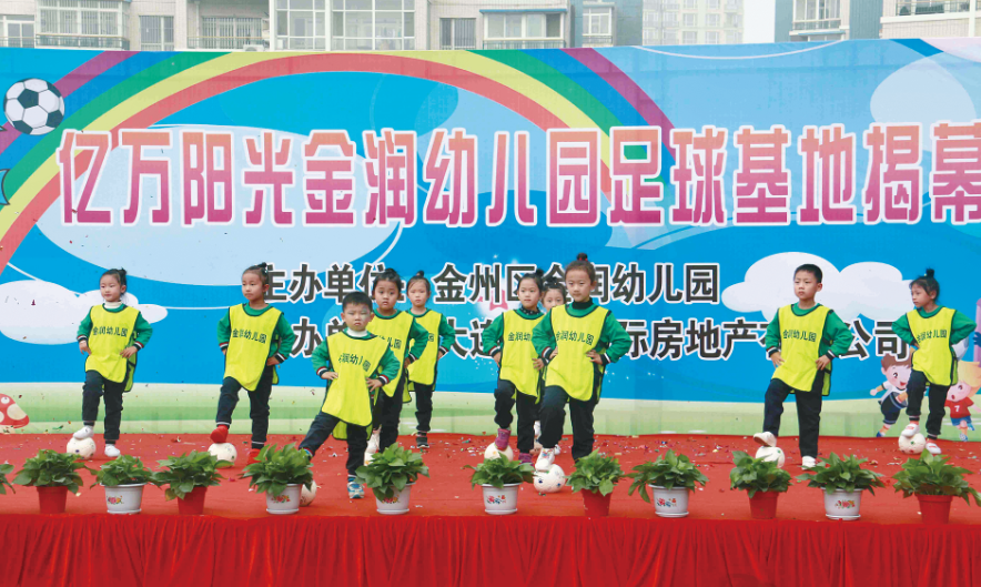 大连金普新区金润幼儿园足球基地挂牌现场。