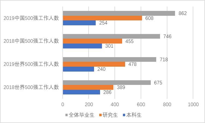 2018、2019届毕业生就职于世界500强与中国500强情况