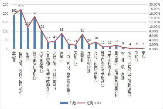 2019届本科毕业生就业的行业分布较为广泛。信息传输、软件和信息技术服务业、金融业、租赁和商业服务业就业人数相对较多。