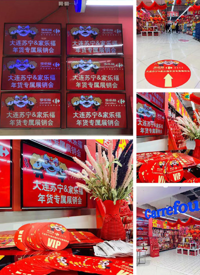 今年是苏宁易购正式收购家乐福中国的第一个春节,苏宁的领导员工都纷纷来到家乐福中山店购买年货,为此,家乐福中山店也把大多商品都做出了折扣活动,并且满足一定条件更有满300赠送100元购物卡活动,力度空前!