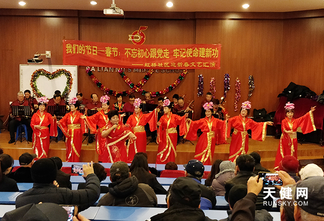 此外,各社区还以居民群众喜闻乐见的歌曲戏曲演唱演奏、舞蹈曲艺等形式举办文艺汇演,喜迎新春佳节。虹桥社区党员群众欢聚一堂,在五中礼堂召开“不忘初心跟党走,牢记使命建新功”迎新春文艺汇演。金海社区举办“弘扬好家风、传承好家训”系列宣传暨文艺演出活动。