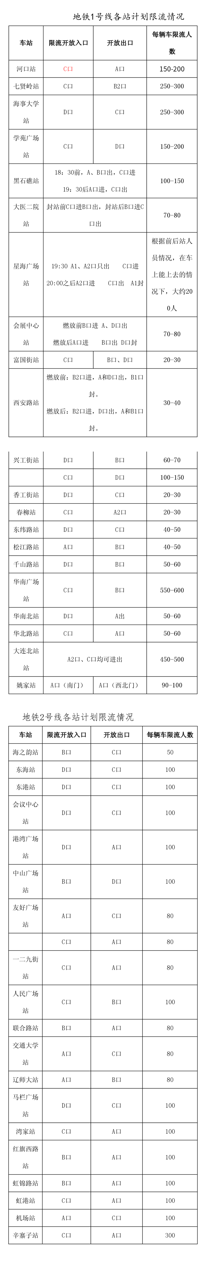2020年大连元宵节音乐烟花晚会期间各站计划限流情况