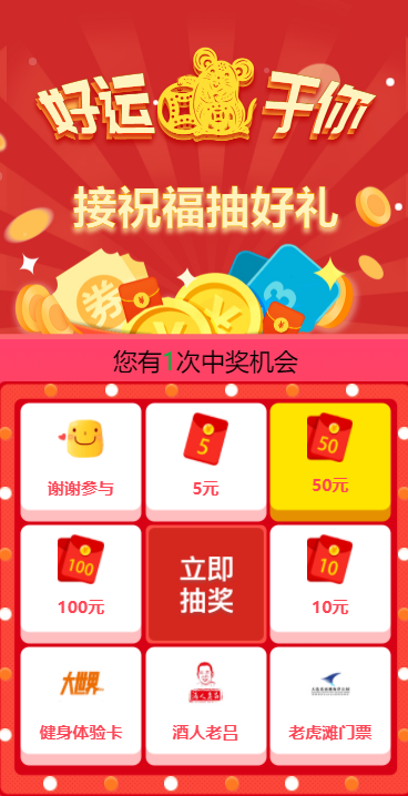 2、抽奖时间:除夕——初六,共7天,每天每个账户抽奖一次