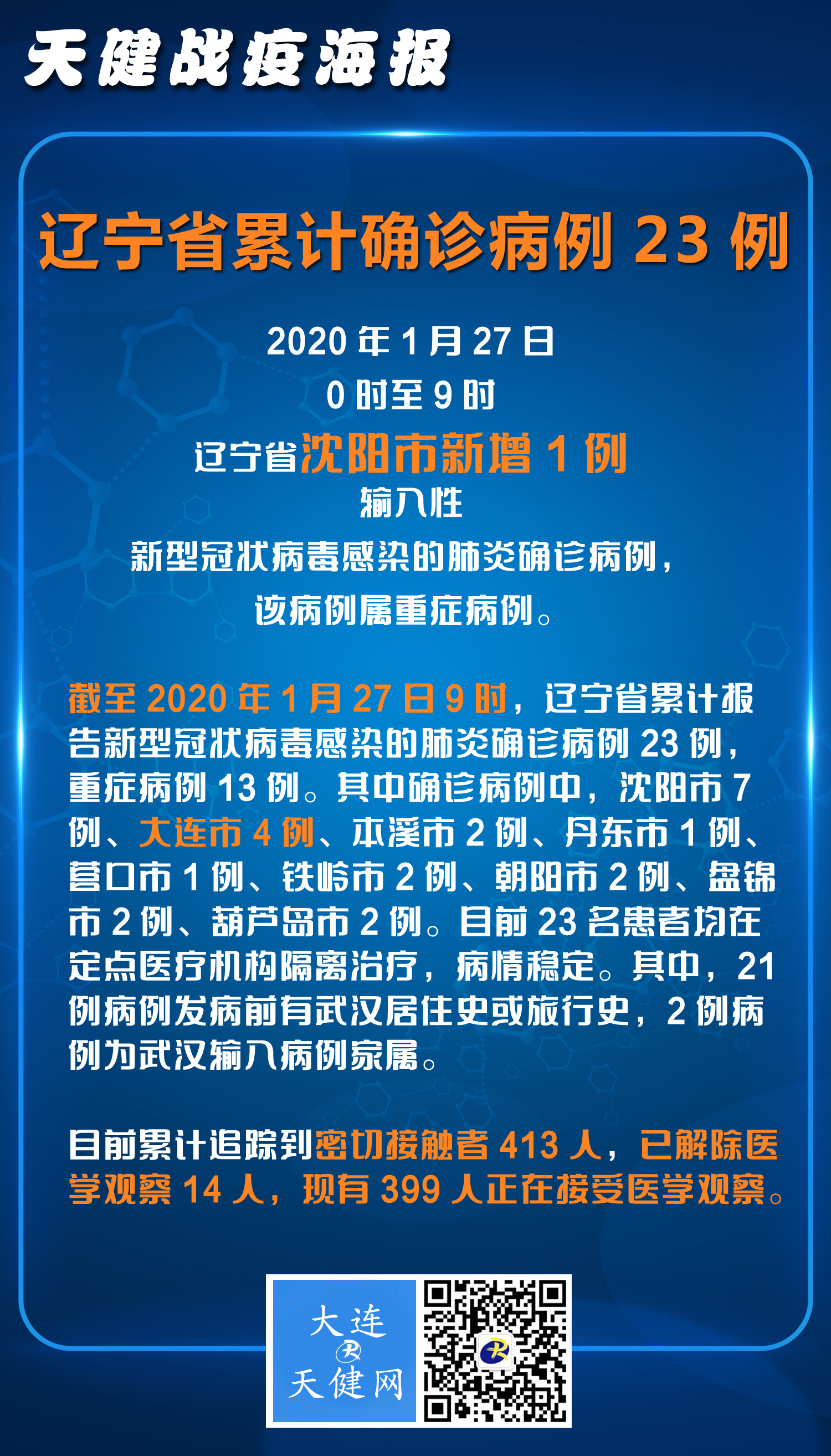 2020年1月27日0时至9时辽宁新型冠状病毒感染的肺炎疫情情况
