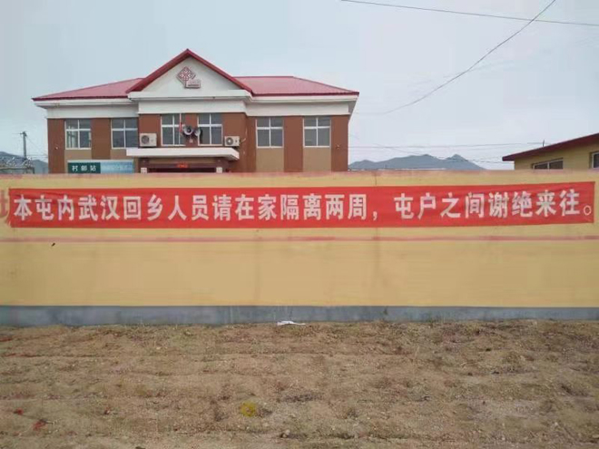 庄河长岭镇各村一切行动,抗击新型冠状病毒感染的肺炎的广播同时在各个村委会的大喇叭里响起,有的村还在村委会外墙上、进村的道路旁拉起了条幅,提醒“武汉返庄人员主动和村委会联系,自觉在家隔离两周”。