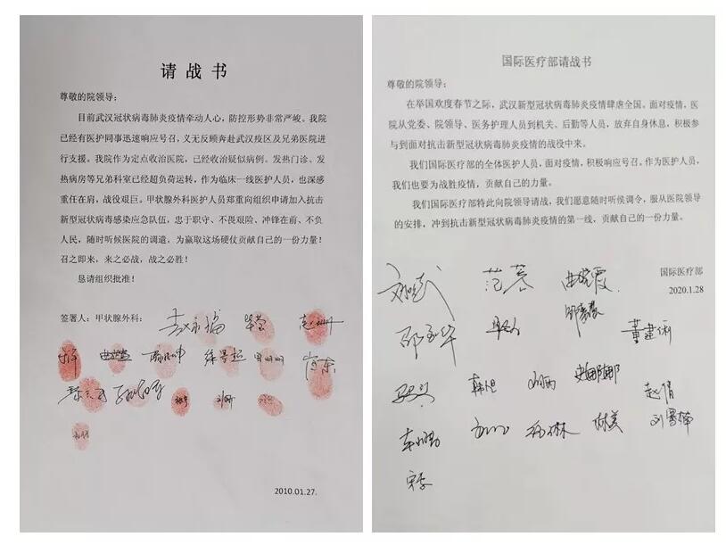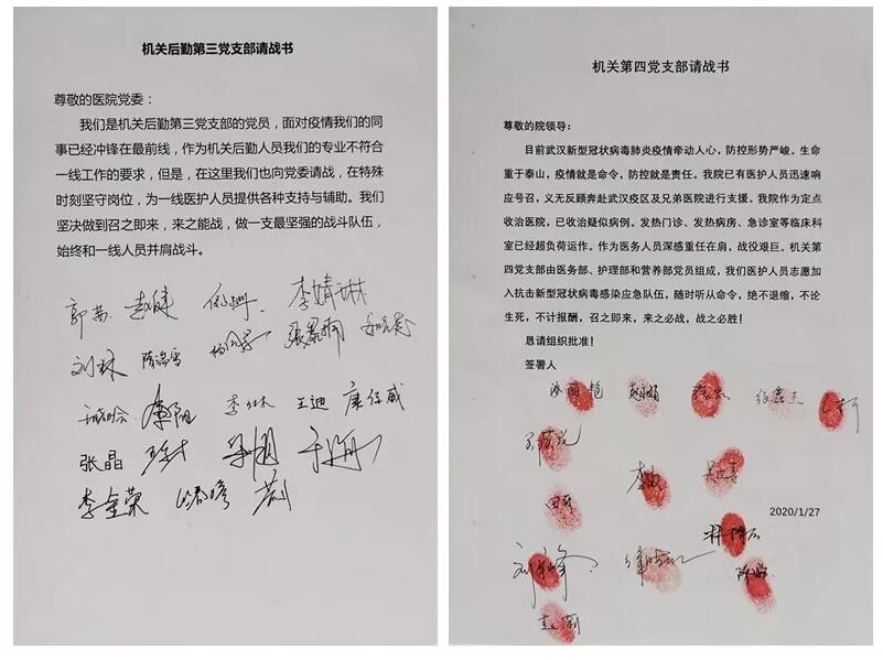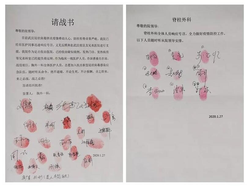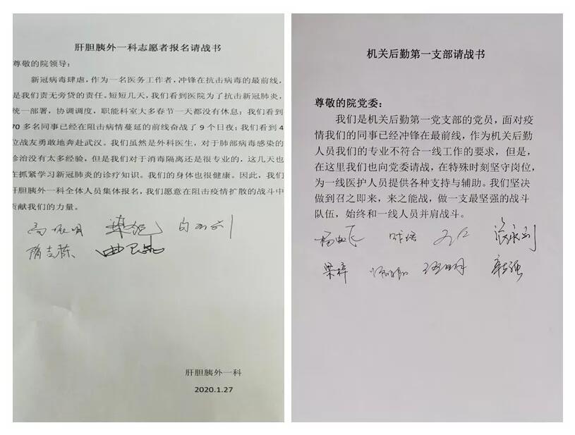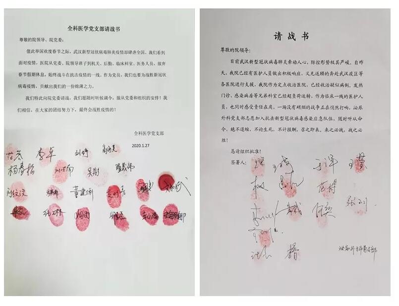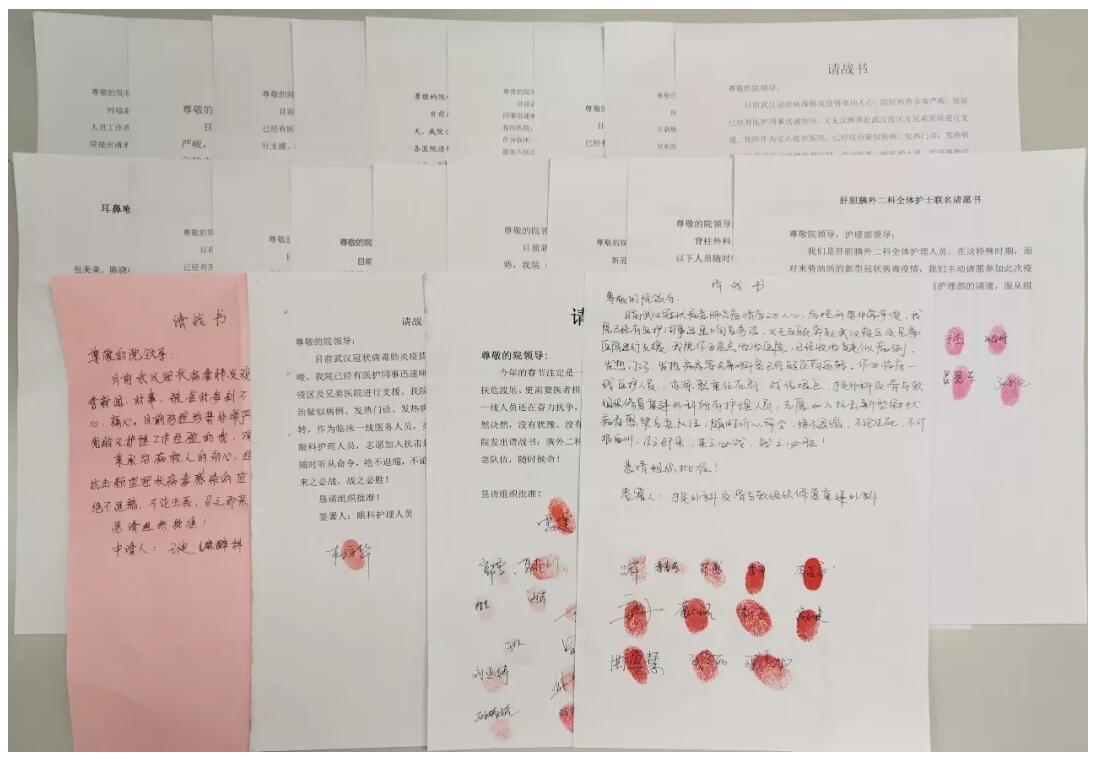 医院的倡议一经发出,全院上下立刻行动起来,一时之间请战书通过各种途径发送给医院党委。