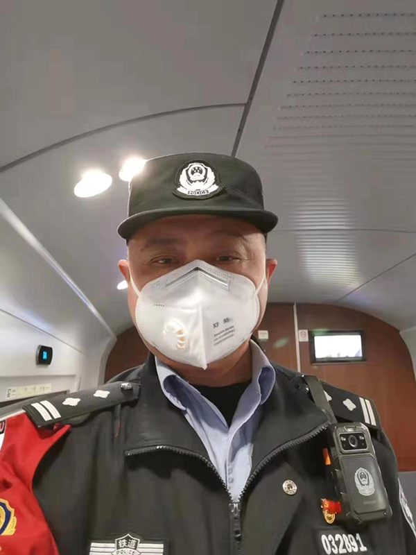 联系上张远斌时,他还在从上海返回大连的列车上,利用空闲,张警官和记者简单介绍了一下情况。这条线路要途经4个省2个直辖市,每个地区都有疫情。从新闻听说有高铁工作人员也被感染疫情后,张警官平静的表示,都在预料之中了,但是为了工作,谁也不能退缩。现在信息传播很广泛,大家都非常注意,上一趟车时,只有一半的乘客带口罩,这趟车几乎就全员带口罩了,这也足以看出,大家已经对疫情有了足够的认识。