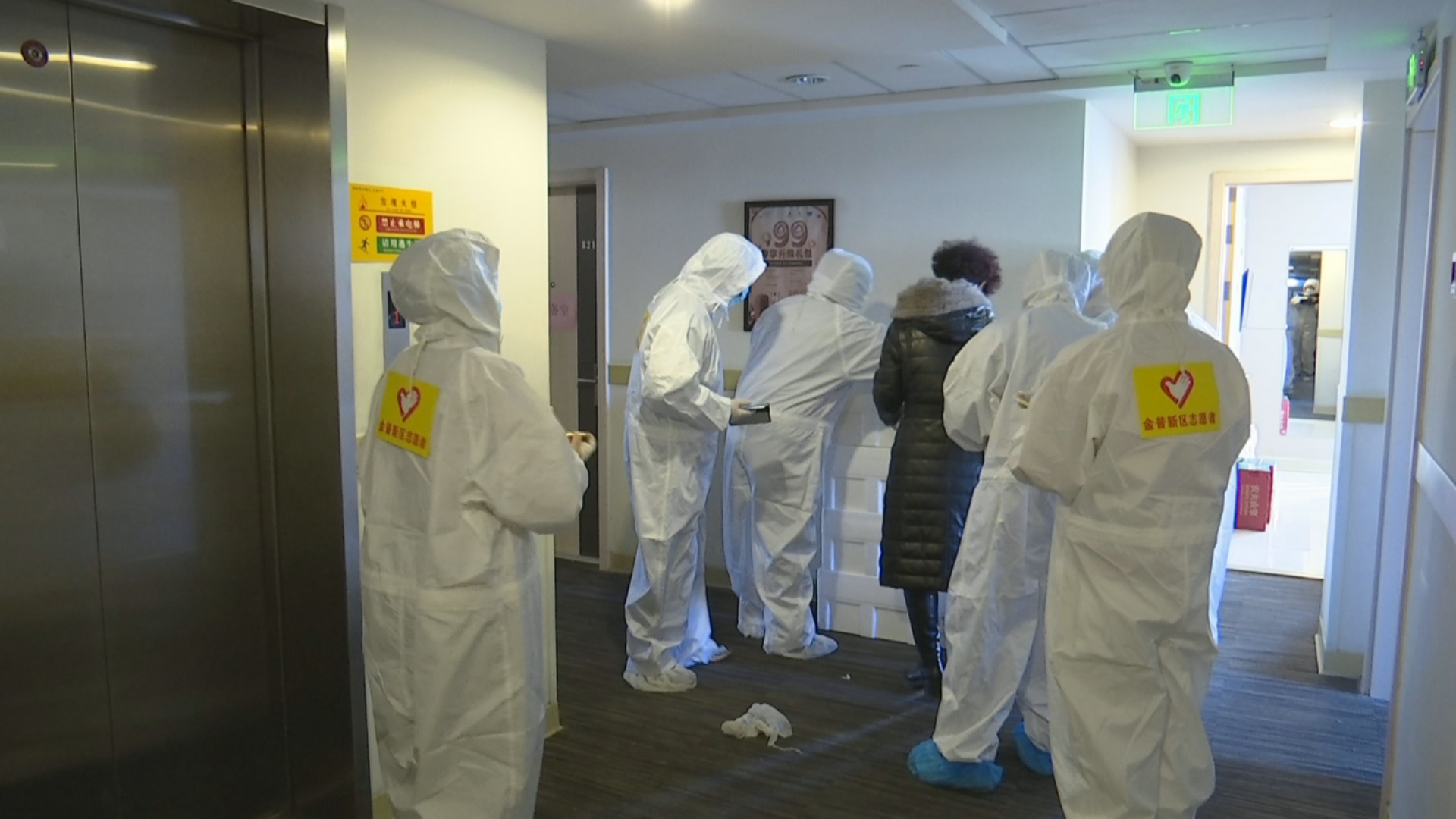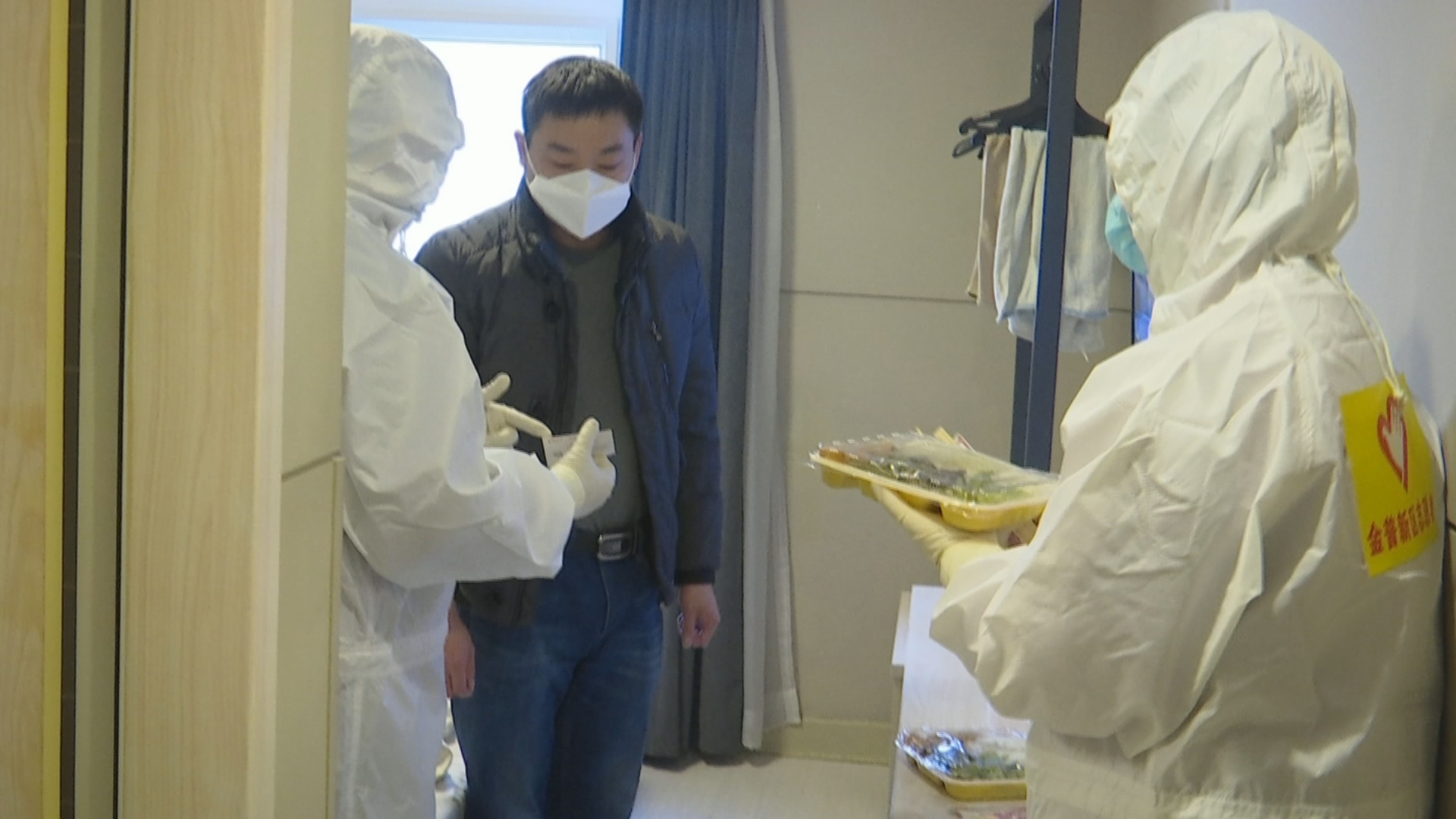 该观察点设在金普新区辽宁街的锦江之星酒店,记者穿好防护服,走进安置区域的时候,正好赶上午饭时间,工作人员正忙着将一份份免费盒饭送到安置人员各自的单间。