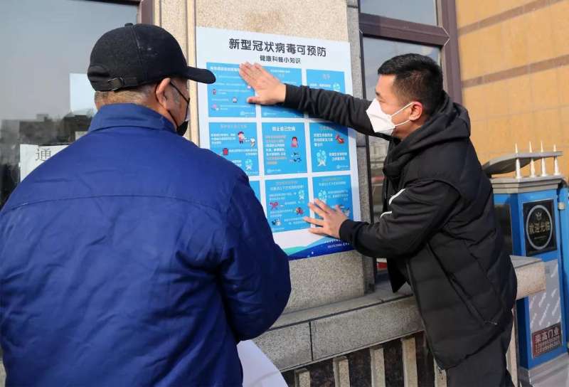 长兴岛小伙自制上百张宣传海报、在各居民小区悬挂张贴 (图片、宁 义 王 颖)