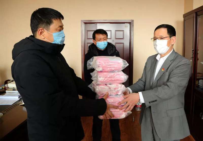 爱心企业负责人向长兴岛经济区新型冠状病毒感染的肺炎疫情防控指挥部办公室无偿赠送5000只口罩 (图片、宁 义 王 颖)