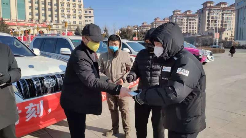 瓦房店爱心车队15辆车主自发组织向市民免费发放口罩