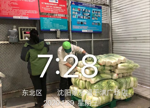 为了保障市民的“菜篮子”,家乐福紧急加购、及时补货