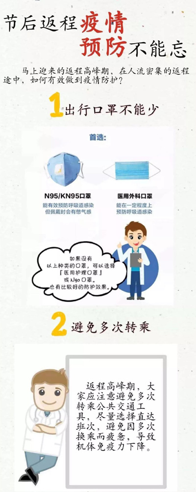 戴口罩,勤洗手,节后返程疫情预防不能忘。