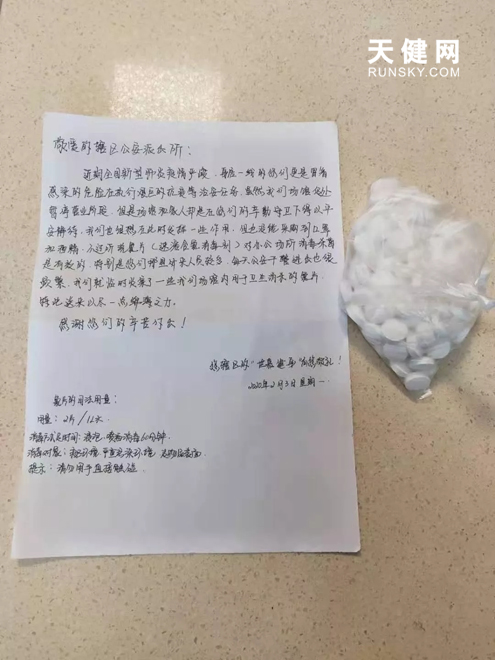 水师营派出所的民警立刻警觉起来,这时该男子主动表明了来意。原来在全民抗击疫情中,大家都自觉配合“全民不出门”,可看到警察却每天带着口罩,穿着警服奔走在抗击疫情的第一线,他被民警这种无私无畏的奉献精神所感动,同时也担心民警自身防护安全。因此,他和所在单位的五名员工,决定为派出所民警送去防护用品。而这“神秘”塑料袋里装的,就是他们买来的消毒片。除了消毒片,塑料袋里还装着他们亲手写下的一封联名感谢信。得知男子来意后,民警还没来得及表示感谢,男子便匆匆离开了。