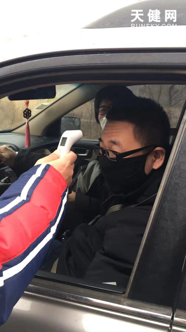 党员志愿者对过往车乘人员进行测温