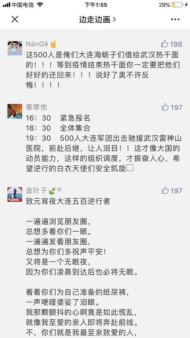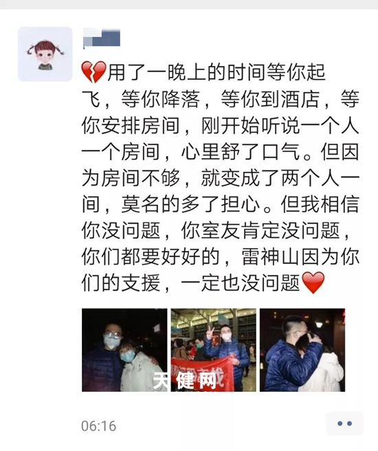 天健网消息(大连新闻传媒集团记者 金东淑)今天凌晨到达武汉的大连医护人员在微信群“武汉增援群”内顺利汇合。特殊时期,虽然同在抗”疫“战场,却因执行任务的具体医院不同,他们只能选择用这样的方式汇合。
