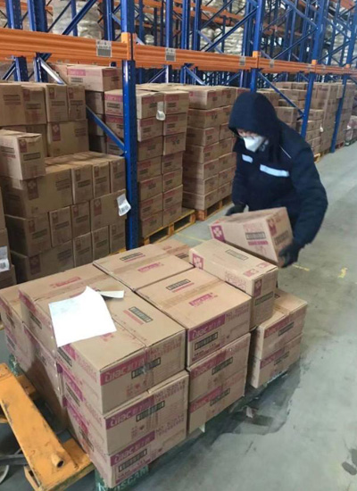 家乐福东北区仓库负责人邹宇丹说:“仓库第三方的拣货工基本上都返乡了,但是疫情出现了,人员紧张,我们就启动了家乐福办公室后台员工进行分拣货物、装车,基本上一个人一天需要承担平时四、五个人的工作量。办公室里面仅有的两名小伙子全部上阵,在短短的一个小时就捡了500多箱货,实效一点不低于专业的捡货人员。在需要数据提供的时候员工不顾疫情,大年初二乘坐地铁到达办公室,加急把疫情必需品订到店里,一直加班到晚上8点多。每个人都没有一丝怨言,大家都觉得必须要打赢大仓里的这场防疫保卫战!“