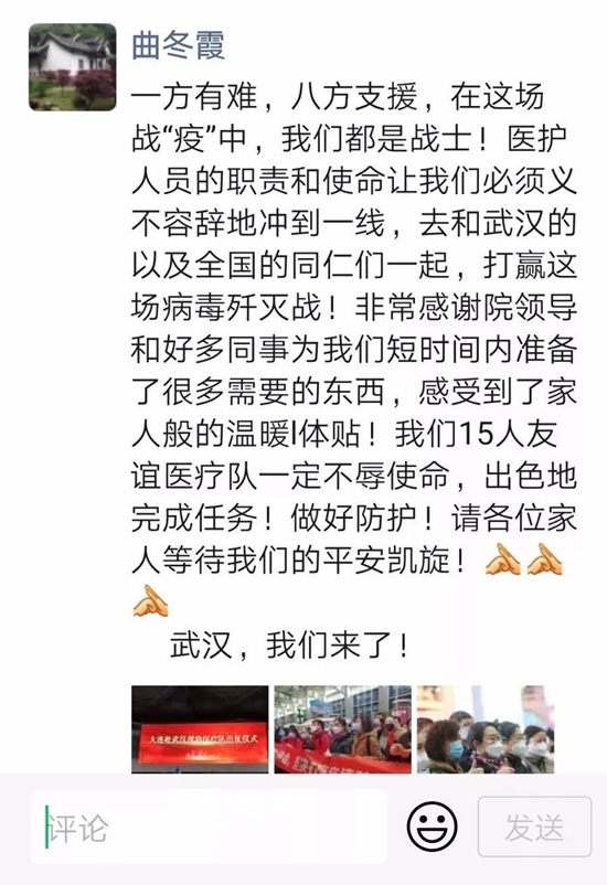 天健网消息(大连新闻传媒集团记者 金东淑)今天凌晨到达武汉的大连医护人员在微信群“武汉增援群”内汇合。