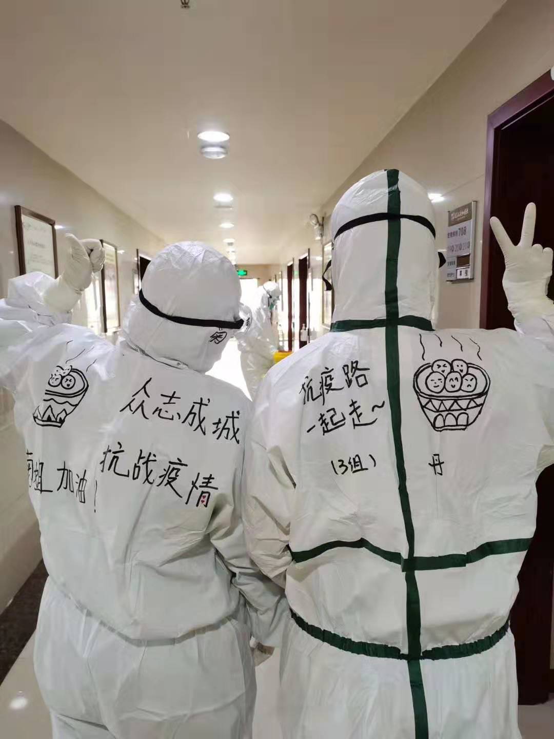 已经在武汉开展医疗工作的大菊把冒着热气的元宵画在防护服上,还写上了每一个人的心愿。希望这种力量可以传递给在病区的患者们,这个不同以往的元宵节,大家一起面对,一起战斗。