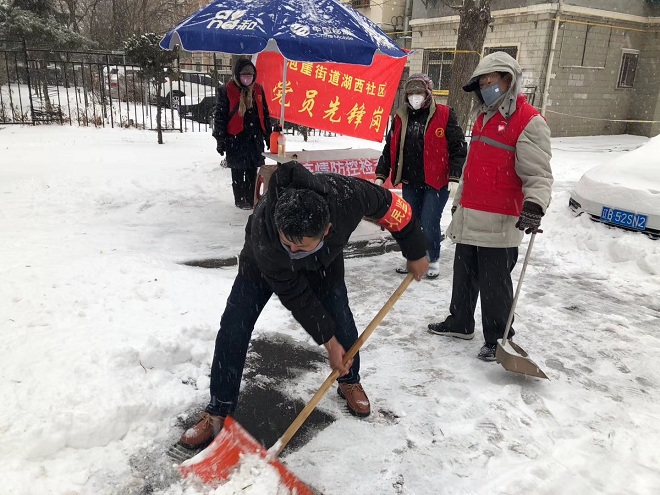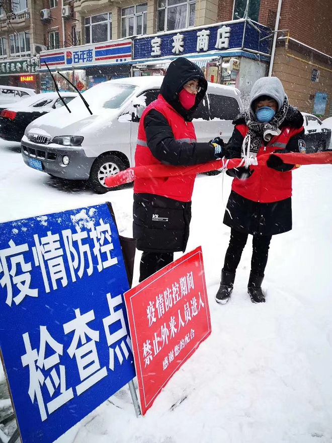 天健网消息(大连新闻传媒集团记者 王煜) 从2月14日开始,大连地区出现雨转雪天气,市区、瓦房店、普兰店和长兴岛等地出现暴雪,其它地区大雪。这是大连入冬以来出现的最大一场全域性降雪天气。在强劲北风的作用下,大雪簌簌而下,有力地拍打在防疫一线战士们的脸上,他们丝毫不顾,仍在岗位上坚守。雪中的你们,是我们心中的英雄;坚守的身影,领我们肃然起敬。