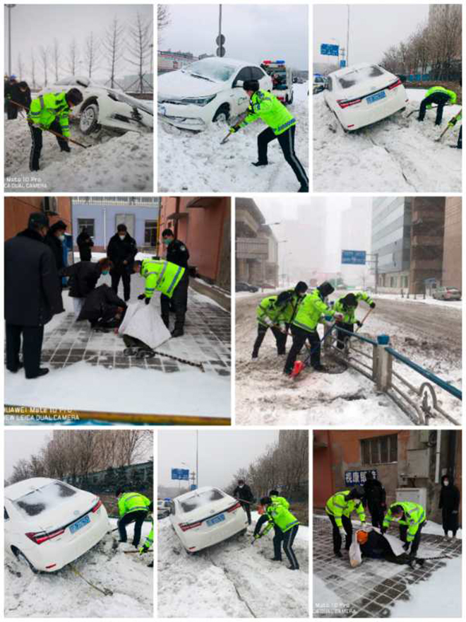 由于这场雨雪下在夜间,加之15日是周末,虽然车辆和人员出行较少,但因道路结冰混着大量泥泞,交通出行易常艰难,也极易引发道路交通事故。风雪就是命令。15日早6时30分,全市2300名交警全部到达预定路口。风紧雪骤,7时00分,交警支队启动一级应急预案,全力保障道路通行,2300名交警冒着风雪,以城市路标的形象,指挥交通、清理雪淤、助力推车、为民解困,以风不住雪不停决不收兵的战“疫”精神,直到上午10时左右,最终打赢了这场风雨雪交加的交通保卫战。截止上午11时,全市交警共协助环卫工人抛洒融雪剂2.5吨,清除积雪多处,帮助群众解困28起,助力市民推车560余台。