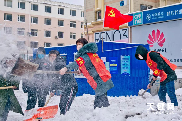 11点,长兴岛街道三堂村榆山小区封闭检查点,村里的执勤人员一边忙着排查人员和车辆,一边忙着清除小区门口积雪。一大早就徒步巡查各检查点的村党委书记张世升说,看到负责卡口检查的党员群众在风雪中依然忘我工作,一幅幅暖心的画面让他很感动,他也为大家的行动而骄傲。