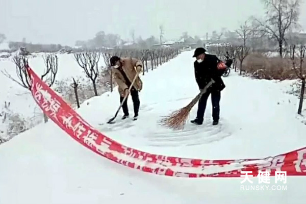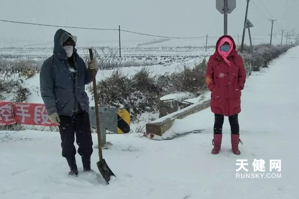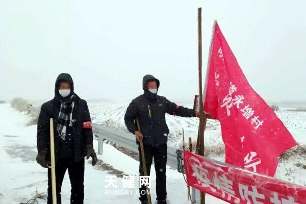 天健网消息(大连新闻传媒集团记者 葛春家)2月15日,花园口地区普降大雪,最低气温已降至零下10度,全区机关及村屯党员干部群众坚守在疫情防控岗位,即使在偏僻的明阳村、大张村、山头村、大崔村、坎子村等十余个村,都有干部群众坚守岗位,严防疫情,风雪无阻。