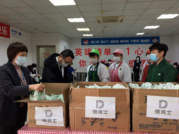今天,“供应者们”的后援团——德克士,风雨兼程的赶来了,东侨业主原总向家乐福门店伸出了最有力的援手,解决因餐饮行业大范围停业带来的“就餐难”问题,免费为家乐福北站店在岗全体成员提供午餐。此举不仅大大缓解了近期在岗职工的用餐压力,还极大的鼓舞了团队士气,让大家知道前路并不孤单,可以后顾无忧地投入接下来的“抗疫”工作。