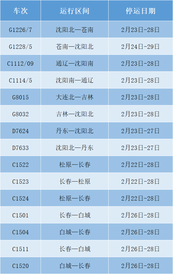 沈阳铁路部门提醒广大旅客,相关列车运行信息以车站公告为准,请旅客密切关注12306铁路客服网站及车站公告,了解最新列车运行动态。