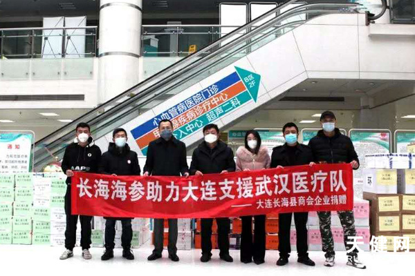 2月20日晚,大连防疫物资运输专车载着由大连钓鱼岛食品有限公司、长海县兴国金茂海产品有限公司、大连智慧渔业集团有限公司、大连环岛食品集团有限公司、大连昌海全福水产有限公司、大连财神岛集团有限公司、大连壮元海生态苗业股份有限公司、长海龙腾湾水产有限公司、长海海参E联盟传媒有限公司9家长海商会会员企业为驰援武汉的547名大连医护人员捐赠的1万3千根价值80万元的长海海参发往武汉。