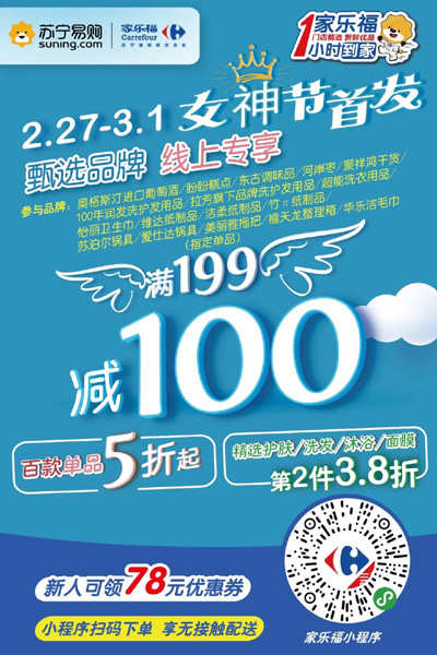 天健网消息(曲静媛 记者 葛春家)开工福利,家乐福线上大促,2月27日-3月1日,上家乐福小程序,逛超市,省时省薪,返岗开工,开启3点1线的生活模式。