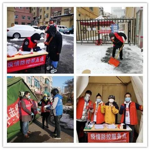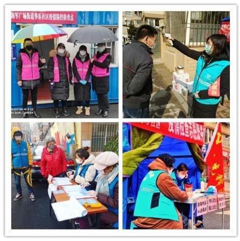 解放社区90后志愿者刘晋昊、郭思琪,每天坚守岗位,风雪不误,为来往的居民登记、测量体温。老虎滩街道95后退伍军人为社区送来消毒用品,并主动报名志愿者服务,执勤时一直坚持提前到岗位接班。上海社区80后志愿者赵启明,在大连市水务事务中心工作,这次疫情期间,他同时参与到中山区和甘井子区两个区的社区疫情防控志愿服务当中,在最寒冷的那几天,在又黑又冷的楼道门口,每天坚守到晚上10点,有居民让他赶紧回家休息,他却笑笑说,“这点工作量跟前往一线的医护人员相比根本不算什么,我得站好这班岗,守护好咱们的家门口”。