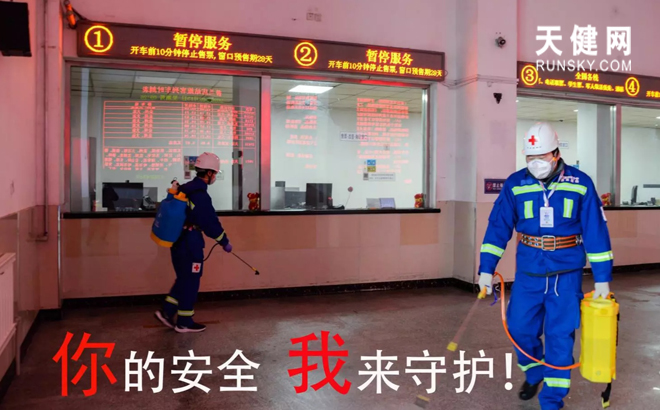 普兰店区红十字会志愿者对火车站进行安全消杀