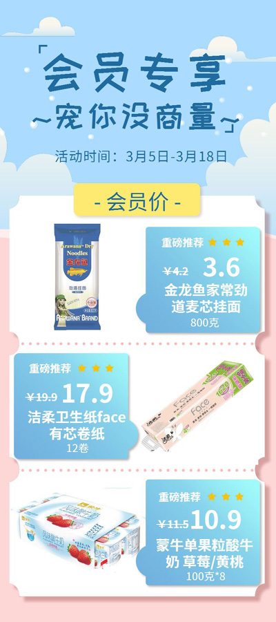 重磅推荐:金龙鱼家常劲道麦芯挂面、洁柔卫生纸face有芯卷纸、蒙牛单果粒酸牛奶草莓/黄桃