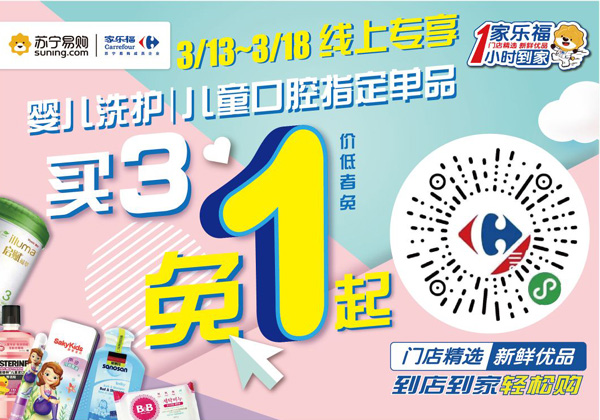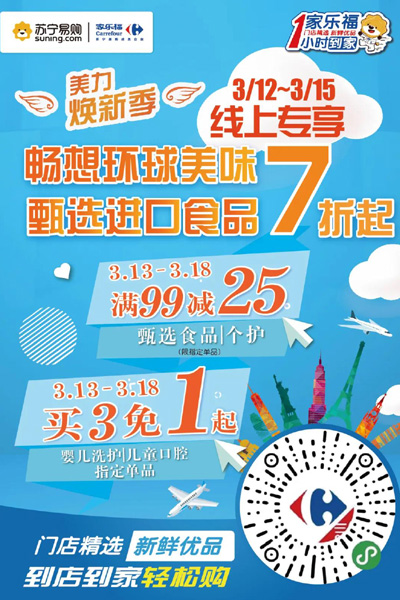 天健网消息(曲静媛 记者 葛春家)3·12-3·15线上大促,上班-路上-家里,三点一线,生活继续。家庭所需『线上』补给,『家乐福』一站购,3.12-3.15线上大促,手机下单,省时省“薪”,这个周末就开启囤货模式。