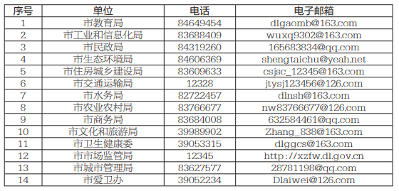 当日,市疫情防控指挥部办公室印发《关于深入开展爱国卫生运动做好新冠肺炎疫情防控工作方案的通知》(大疫指办发〔2020〕95号),进行全面部署。为充分发动市民群众参与爱国卫生运动,监督环境卫生整治工作,市爱卫会现公布市住房城乡建设局、市城市管理局等14个部门咨询投诉电话。如果市民发现问题,请按照下面的联系方式进行咨询和投诉。